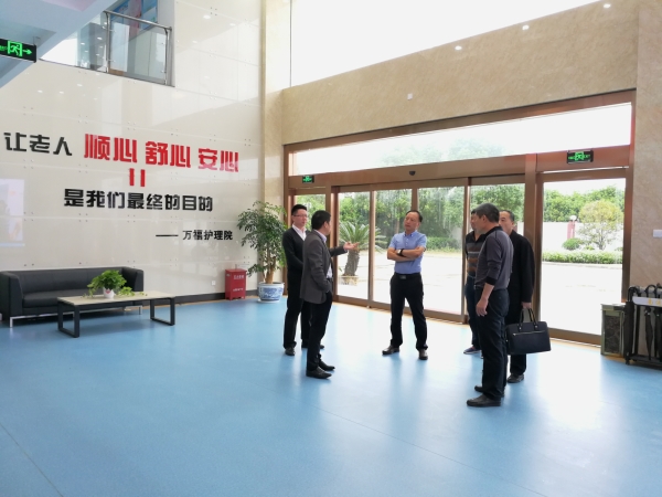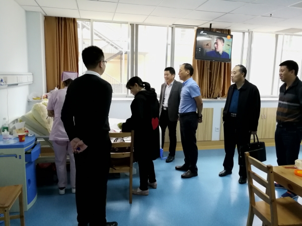 2017年10月11日下午,南通市民政局陈太山局长等一行在港闸区民政局蒋长泉副局长的陪同下莅临华体会体育官方网站_华体会(中国)护理院视察、指导工作。在我院总经理朱华同志的带领下,陈局长等一行先后参观了我院医生办公区、康复治疗大厅、医学检验科、影像科等科室,以及老人病房、食堂、景观花园等多个区域,对我院的环境、设施、设备等多个方面给予了充分肯定。