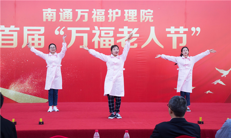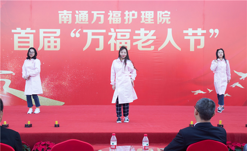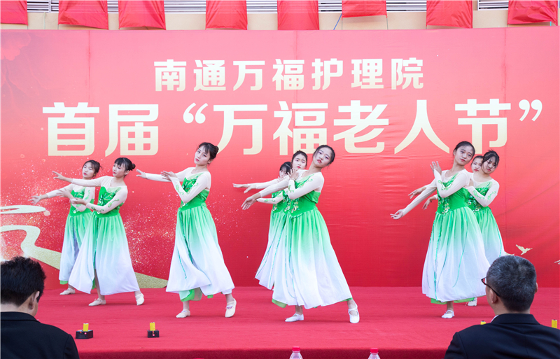之后,如皋市职教中心的同学们给现场的老人带来了他们的爱心表演:舞蹈表演-九儿、歌曲-远走高飞、舞蹈表演-春天的芭蕾。