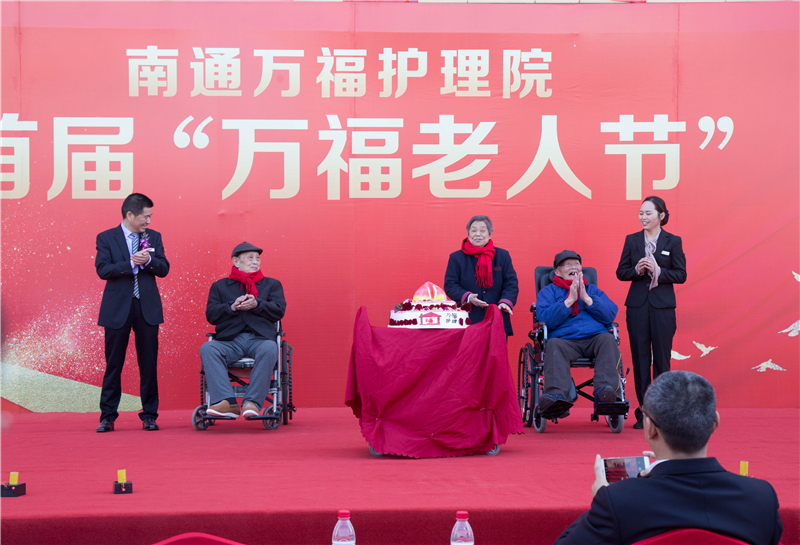 老人家属代表王鸭群女士上台和大家分享她与老人在华体会体育官方网站_华体会(中国)的亲情故事之后,南通华体会体育官方网站_华体会(中国)护理院为入住老人王立仁爷爷、顾照爷爷和沈金凤奶奶举办了生日派对,朱华总经理、徐霞经理为寿星戴上了象征吉祥、长寿的红围巾,和老人们一起切下象征幸福的蛋糕!