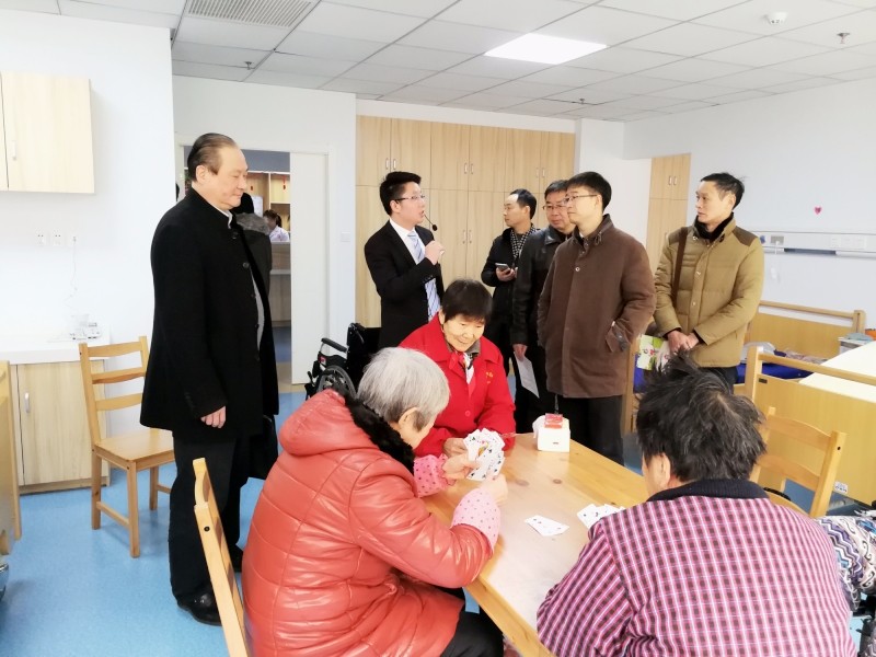 下午2点30分,景校长一行抵达南通华体会体育官方网站_华体会(中国)护理院,在我院总经理朱华先生的带领下参观了我院的康复训练室、医生办公室、医学检验科、老人入住房间、食堂、景观花园等多个区域,景校长一行和老人亲切交谈,询问其生活状况,对老人们的精神面貌表示称赞,同时也对我院的工作尤其是护理工作表示肯定!