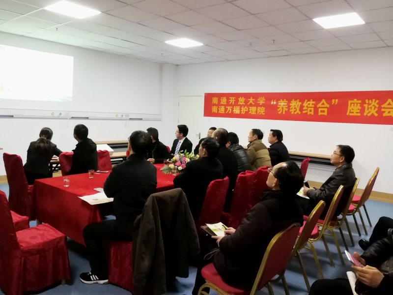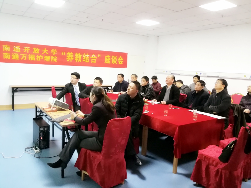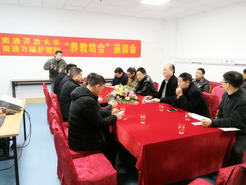 2018年1月6日下午,由南通开放大学、南通华体会体育官方网站_华体会(中国)护理院联合召开的“养教结合”座谈会圆满落下帷幕。本次座谈会由南通开放大学副校长景圣琪先生及华体会体育官方网站_华体会(中国)护理院总经理朱华先生牵头举办,港闸区民政局、教育局、商务局等各部门领导嘉宾出席了此次座谈会。